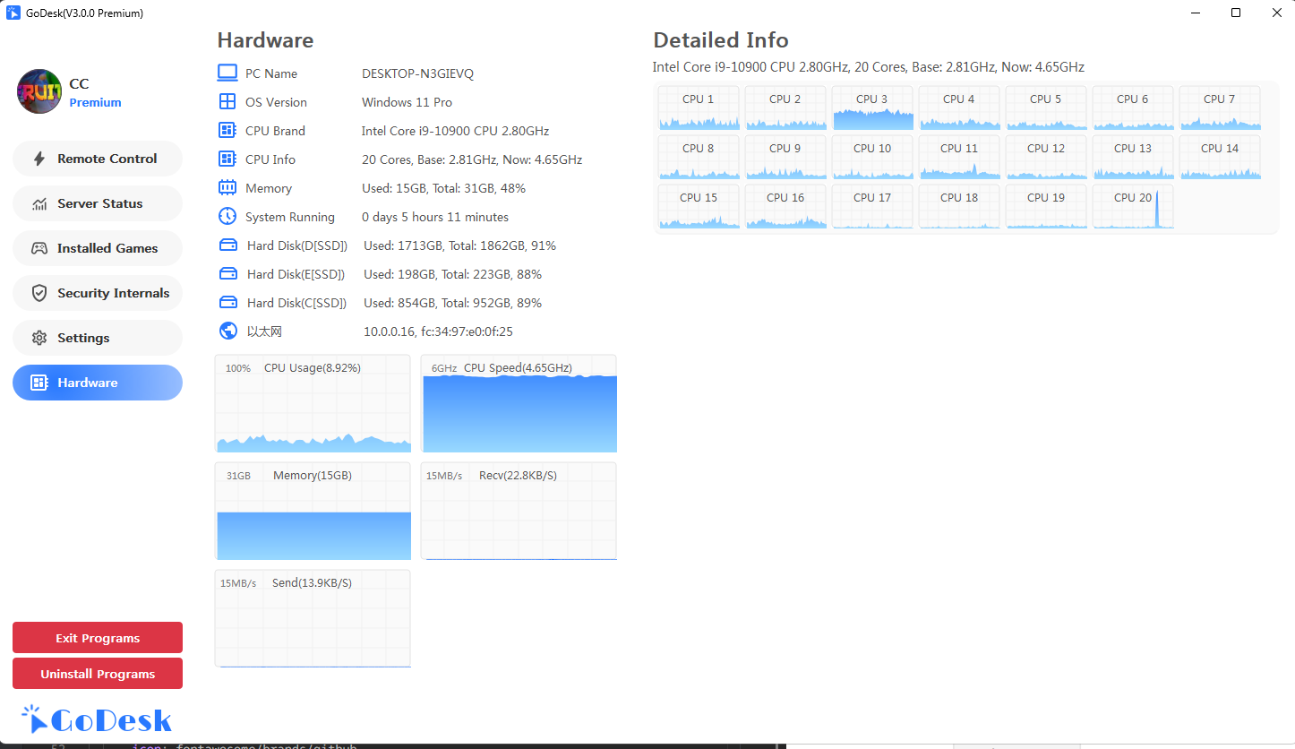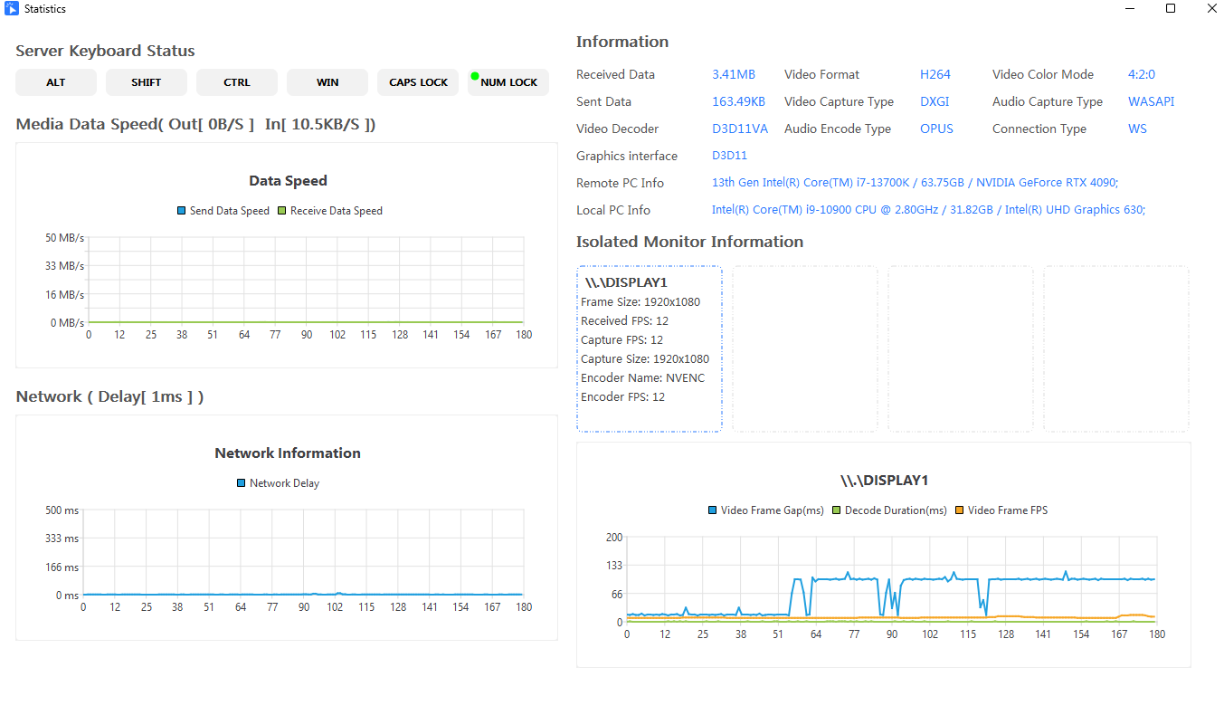 Statistics 1. Host Hardware Information Statistics 2. Connection Information Statistics After establishing a connection, view from the Statistics入口
